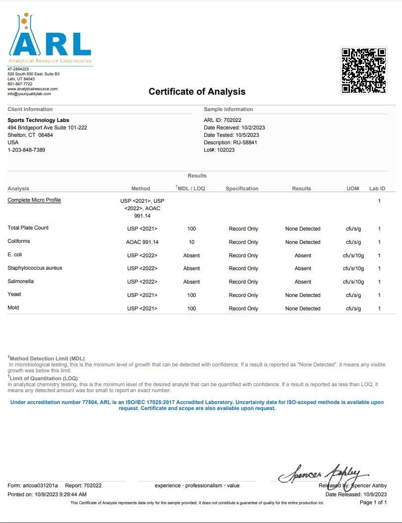 Sports Technology Labs is dedicated to providing high-quality RU-58841 powder. Every batch we sell undergoes testing by a third-party American laboratory to verify a minimum of 98% purity. We also list COAs on our website, and our independent lab accepts phone calls to confirm their quality.